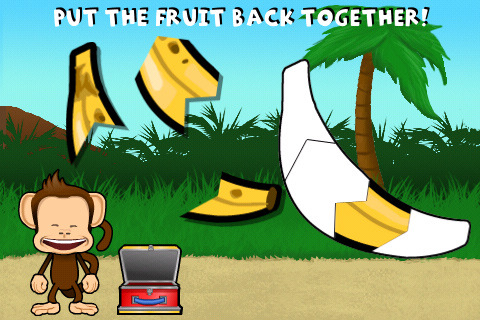 5. PUZZLE. This monkey’s fruit broke into pieces! How odd! Put it back together for them. Teaches shapes and pattern recognition.