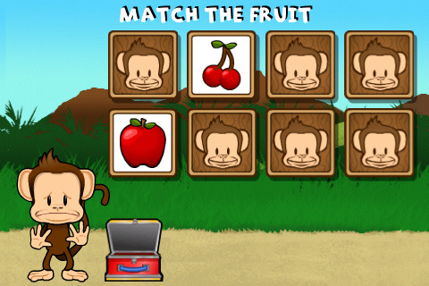 2. MATCHING. Match pairs of fruit hidden behind the cards to pack lunch for this monkey.