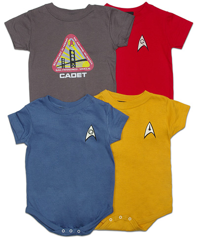 No matter what your little one’s proclivities, there’s a snapsuit for your future space traveler. Projectile vomits unidentifiable substances? Science. Figured out how to juryrig the high chair to obtain Cheerios at will? Engineering. Has fully trained the adults in the house to do his or her bidding? Command. If the future isn’t yet clear, pick up the Academy Cadet.