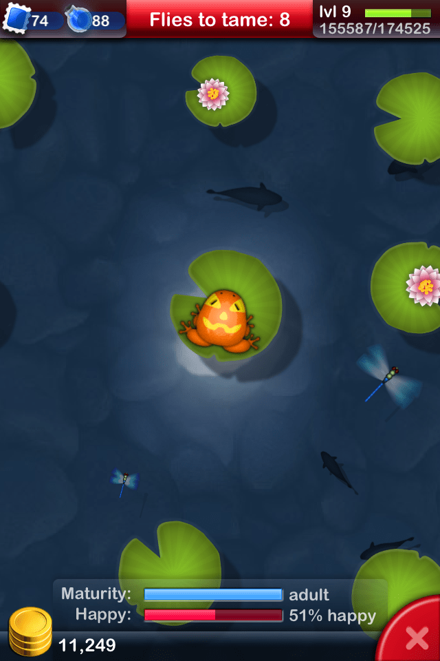 If you are playing Pocket Frogs on the iPhone or iPod Touch, there is a special frog today that will get delivered to your mailbox to use. It is the Tangelo Aurum Lanterna frog celebrating Halloween.