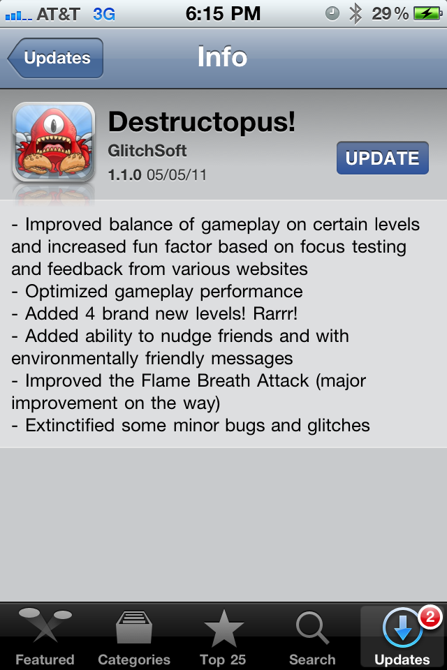 No sooner did we finish our review of Destructopus! did developer GlitchSoft release an update for the game. This update however includes a few new features, updates, and rebalancing of certain levels. Again, it’s great to see a developer not rest after releasing a new game and push out an update so quickly that includes new content.