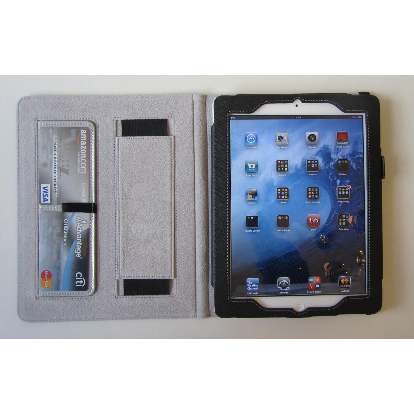 Upon first inspecting the case when I received it, I was quite impressed with the overall quality of the case. The stitching looks very tight and straight and the texture on the leather looks much better than the bumpy leather I see on other cases. The leather on it however doesn’t seem as thick as others nor does it feel as soft. On the inside, the case is lined with a very soft material that feels like microfiber so I’m not worried about it scratching up my iPad when placed inside it. The case itself is not very hard like other leather cases and has a softness to it that makes it feel like one of those Moleskine Folio Notebooks. The case even includes an elastic strap that keeps the cover closed when not in use. I’m a big fan of folio style cases because of the fact that they will not draw attention to your iPad. It helps conceal your expensive device from those who might want to steal it from you.