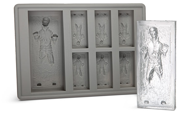 I posted about the R2-D2 ice tray earlier, but if R2-D2 isn’t to your liking, how about a little Han in your drink? That’s right, you can also get Han Solo in Carbonite to cool down your drinks. The tray allows you to make 1 large Han Solo and 6 smaller ones. This one also costs $9.99 and knowing most Star Wars fans, you’ll probably want to pick up both this one and the R2-D2 one.
