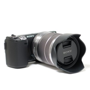 The lens attached to the body is a Sony made, E18-55mm f/3.5-5.6 OSS lens. Unlike traditional DSLR lenses that are mainly plastic and rubber, this lens is made entirely out of metal (I don’t know what kind) and has a really nice industrial look to it. Because of this, it too feels very solid in your hands. When combined with the body, the fit is so exceptional that it almost feels as if the body and lens are one piece. Very impressive indeed. As you can see from the image, I attached the lens hood to it just to see how it would look.
