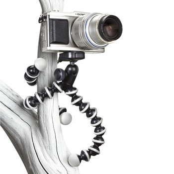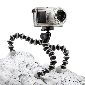 - Flexible, wrappable legs with rubberized ring and foot grips stabilize on any surface