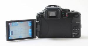 On top of the screen you’ll find the electronic viewfinder and on top of that, the hotshoe mount. If you look to the left of the electronic viewfinder, you’ll see the button marked LVF/LCD. What this does is switch your view from the viewfinder to the LCD and vice-versa. You only use this if the LCD is flipped open. The rest of the buttons on the right said are pretty standard. The layout is similar to that of the PEN E-PL3 except that the G3 has a rear dial where there the thumb grip is. This makes it more natural to adjust certain functions as it is in easy reach of your thumb.