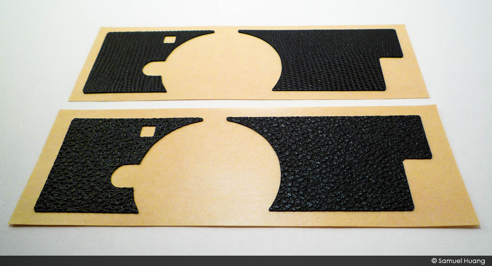 Sandwiched between the cardboard you’ll find your laser cut camera coverings. They are cut to exact specs and as you can see, they have different textures depending on which design you get. The above two are the Black Lizard Emboss on top and the #4034 on the bottom. You’ll see the #4040 in a bit which is the one I used on the Olympus E-PL3.