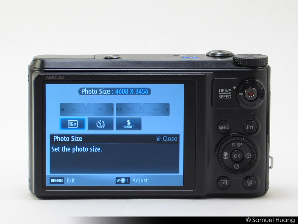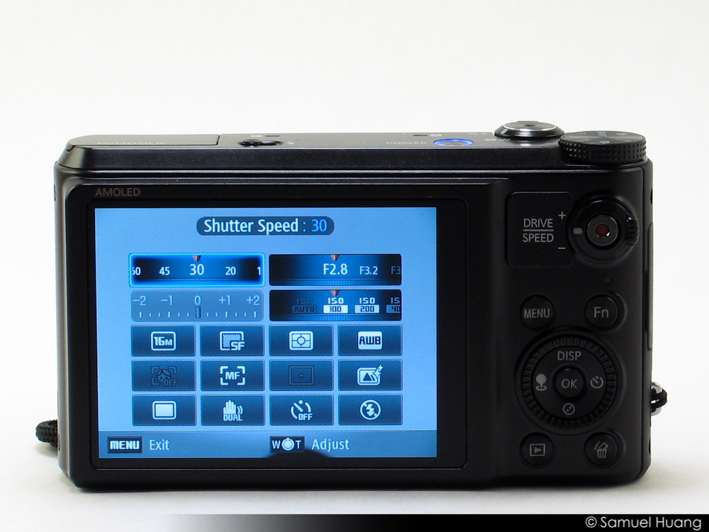 Now, I didn’t notice this with my initial hands-on, but the rear viewscreen is actually a tiny bit recessed and doesn’t sit completely flush with the rear. This is a very thoughtful design on he part of Samsung as it keeps the glass from touching surface when the camera is laid flat on it’s back. I would however probably still suggest some kind of clear screen protector to keep scratches off that gorgeous 3.0″ AMOLED display even though the rear glass seems very durable and I haven’t had any problems with scratches since I’ve had it.