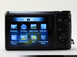 I really like the approach Samsung took with the menu system in the WB850F. For starters, the camera has a physical mode select dial on the top of the camera which makes selecting different shooting modes fast and simple. I also like the fact that Samsung also made it so that you do not need to look at the icons on the top of the dial to know which mode you’re in. As you turn the dial, the selection also appears on the rear viewscreen along with any accompanying options that go with that mode. For instance, if you place the camera in ASM mode, 3 selection icons will also appear on the viewscreen for A, S, or M modes that you would select with the directional buttons. If you select SCN mode for instance, all the different preloaded scene modes come up that you can also select with the directional buttons. It’s all very simple and plainly laid out for you that never even had to thumb through the instruction manual to use the WB850F.