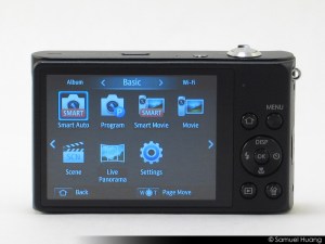The DV300F is a very handsome camera. It’s very minimalistic design and smooth body make it look and feel good in your hands and slides easily in and out of your pocket. I really like how Samsung integrated the front LCD viewscreen where it is hidden underneath the face of the camera. This gives the camera a very clean look up front and also makes good use of what otherwise would be a wasted area of space. Quality wise, the DV300F feels pretty solid but also very lightweight. It’s also pretty thin for a camera which again helps with it being highly pocketable.