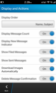 - Step 3: Once in the BlackBerry Hub Settings page, hit “Display and Actions” button.