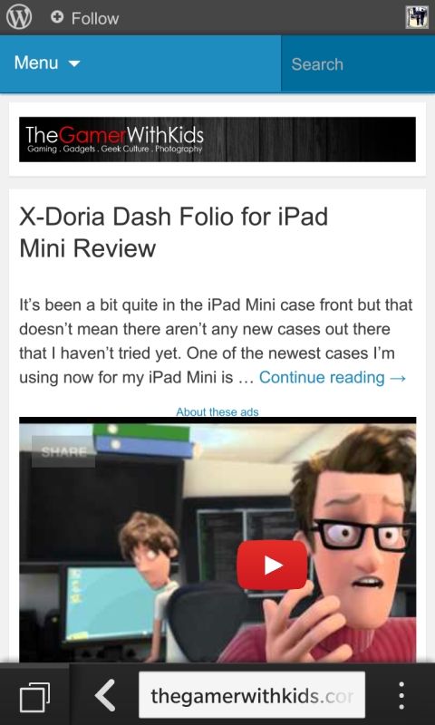The BlackBerry 10 browser also has what seems to be pretty standard now, which is a Reader mode. This just means that it strips the page of all unnecessary graphics and only presents you with what’s relevant, the text.