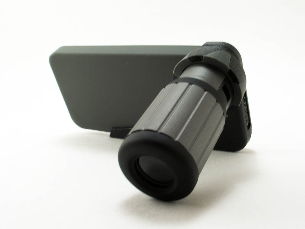 At the heart of the kit is the Carson CloseUp Monocular. This is what will allow your iPhone 5 to take photos of objects in a distance. The monocular attaches to the included iPhone 5 adapter which consists of a simple silicone case and the monocular adapter attachment. The adapter is made of a hard plastic that slips over the silicone case. The monocular itself attaches to this rubber ring that that sits over the lens opening of the adapter.