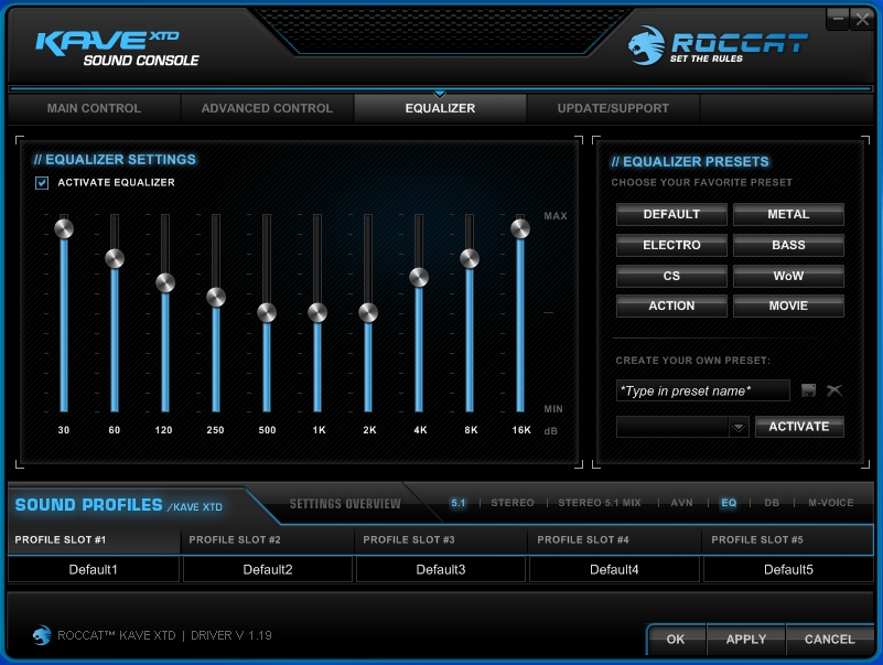 Like all ROCCAT devices I’ve used in the past, the KAVE XTD 5.1 Digital needs additional software to make the most out of the hardware. In this case, you have to head on over to ROCCAT’s site here and download the latest driver for it. The software will allow you to control every aspect of how your headset functions.