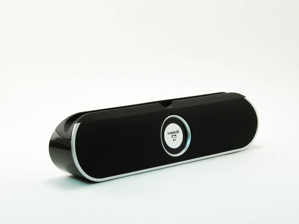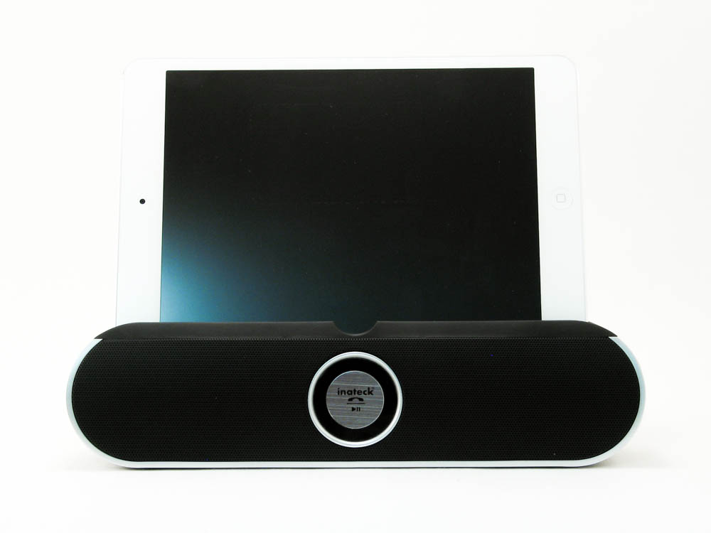 The Inatech BP2001 is an excellent wireless speaker. It now has a permanent place on my nightstand next to my bed. I use it here because it gives me a place a dock my iPad while charging and I can use it to watch videos there while laying down. Not only that, I like listening to music before I go to bed too and with my iPad and this, it has replaced my clock radio in terms of function and it looks much better than that ever did. The BP2001 only comes in black, but it’s a very classy color that will really go with anything. The silver border that trims the speaker gives it some character, and overall, it’s a good looking speaker.