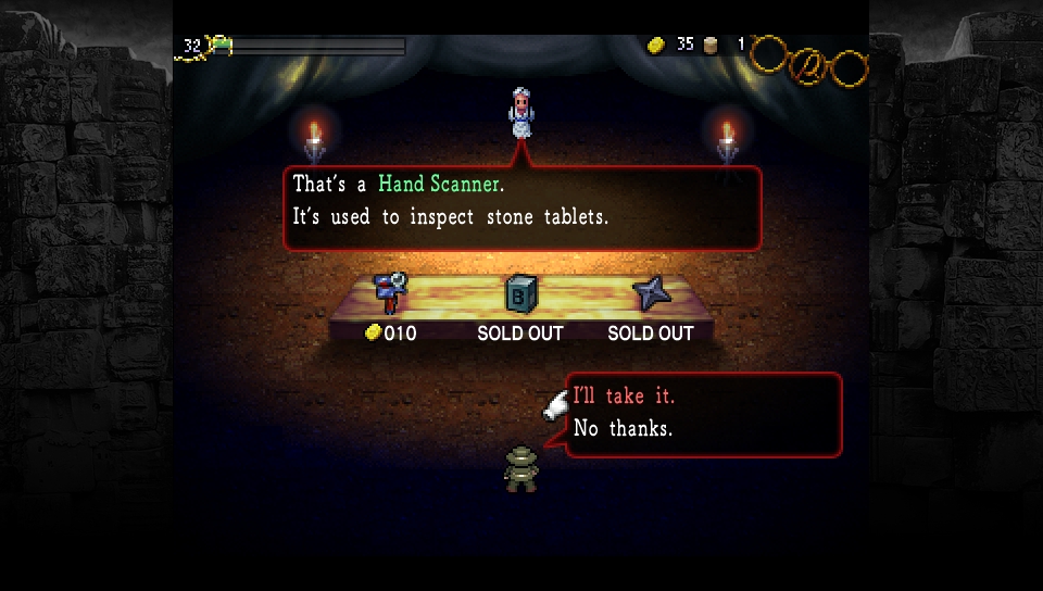 Graphically, the game is a big step up from the original La-Mulana game. Much of it is still reminiscent of that game but it has less of that 8-bit style of art. It doesn’t look as flat as the original with La-Mulana EX looking more realistic with more depth to all the art assets. It art style reminds me a bit of Spelunky, which is a good thing as that game looked pretty good for what it was. I’m sure there are a lot of parallels that could be drawn between La-Mulana EX and Spelunky, but in my opinion, they are both great games on their own and vastly different in gameplay.