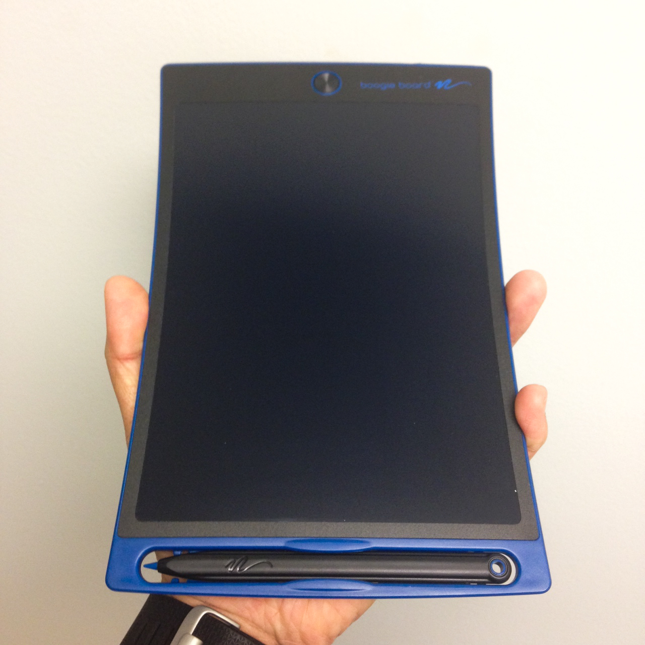 The writing surface on the Jot 8.5 is an ultra light LCD screen that has been laced with magic. Seriously, I have no idea how the tech works on the Boogie Boards, but it’s literally almost like pure magic. You write on the screen using an ordinary stylus and it appears on the screen. You’re not even limited to using the stylus. Your finger nail works, a coin, the back of a pen, anything. What else is amazing is that its fully pressure sensitive too. The harder you press, the thicker the lines. When you’re done writing or doodling, your image stays on the screen for as long as you want until you tap the erase button at the top of the Boogie Board. In an instant, your image is magically gone, ready for something new.