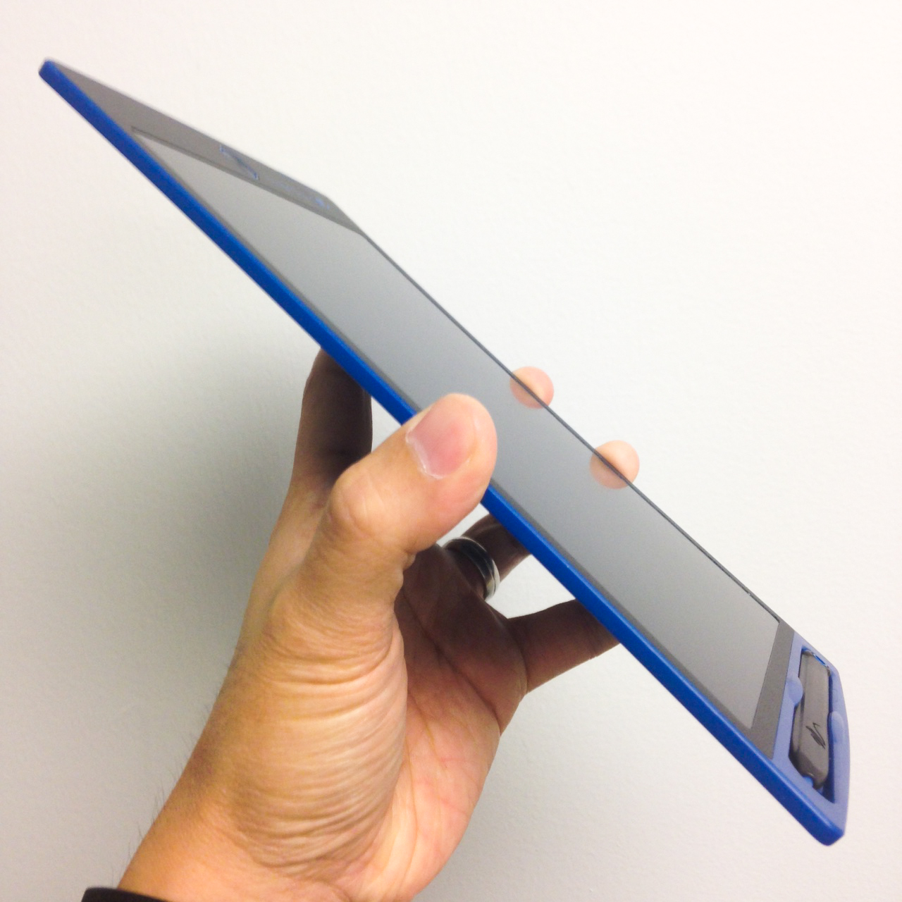 The new Boogie Board Jot 8.5 is totally not what I was expecting. While the original Boogie Board was far from stylish, this new one is a looker. It’s no longer a pure rectangular slab of plastic and has a slightly more interesting shape to it. Not only that, the new Jot 8.5 is incredibly thin at around just 2-3mm in thickness. It also barely weighs a thing. This is mainly due to the fact that the body is made entirely of plastic.