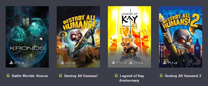 If you $11 or more, you’ll also get these 4 games above. That’s 9 games for as little as $11. The Destroy All Humans series is well worth it alone for that price.
