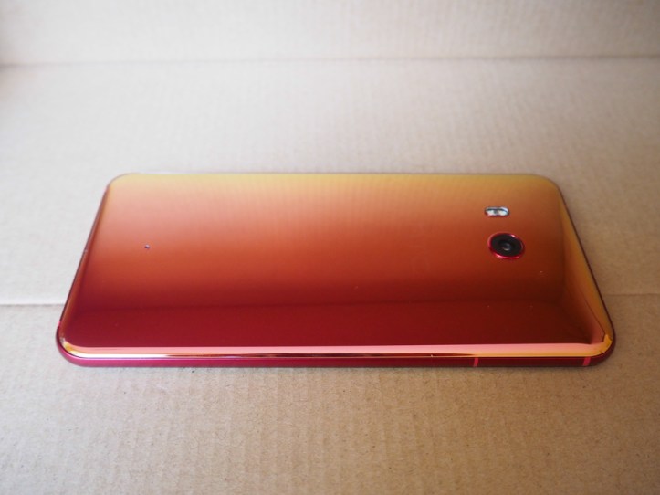 It’s not until you start viewing the HTC U11 from the sides and rear that you really see the beauty in the design. The border is made of aluminum that seamlessly blends into the curved front screen while also blending into the new rear liquid-glass panel. And it’s this liquid-glass panel that I really want to talk about as it’s what sets it apart from other devices with glass backs. The glass on the U11 is simply stunning with a crazy color shifting mirror like back. It’s amazing looking in Solar Red where the color shifts between a deep red and gold. There are times where it even look pink and orange. It’s really hard to capture on camera just how cool this looks.