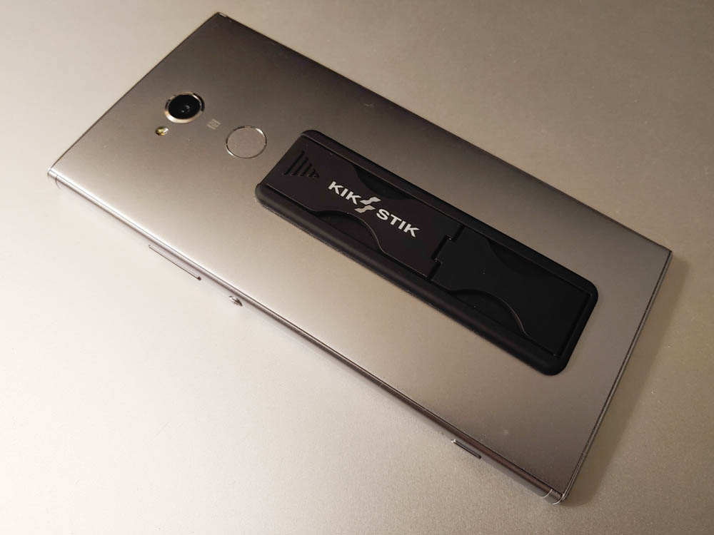 Attaching the KIK STIK is as easy as peeling off the rear backing and sticking it on to the back of your phone. Once on, it stays on pretty firmly and doesn’t seem like it would come off that easily. The KIK STIK is easy to use too. You just slide the stand part back and it clicks into place. In this position, you can stand your phone up in either portrait or landscape mode. As a stand, it does feel pretty stable and doesn’t wobble around, which is good. This is a good way to make your phone hands free without having to carry around a separate stand.