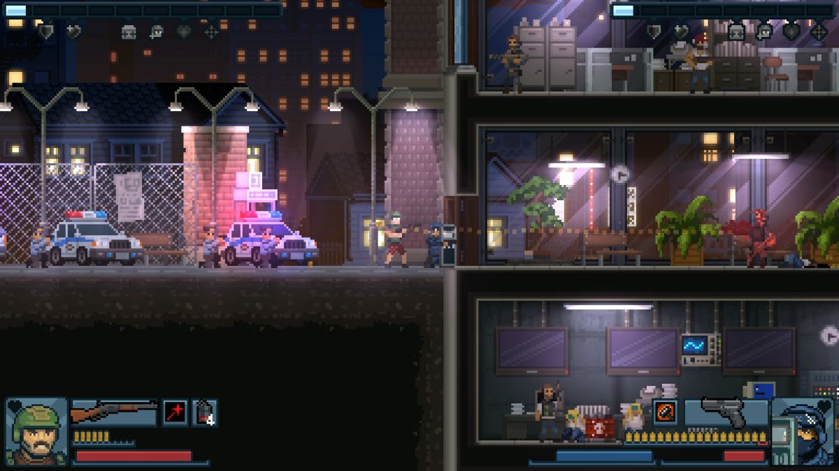 Door Kickers: Action Squad is a huge departure from the previous game. Where as Door Kickers had slightly more realistic graphics, Action Squad has a more retro theme and look. It features 2D pixel art, but updated for the modern world. Animations are fluid and fast and really make for an exciting experience.