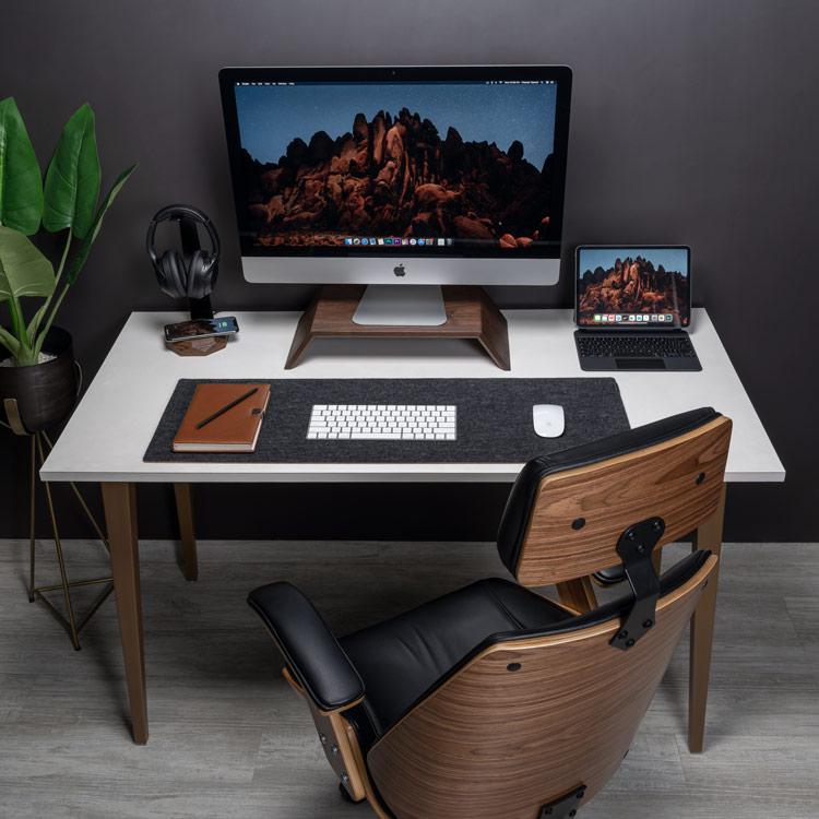 Setting out to build the ultimate workspace can be a challenge, especially if you’re trying to build something more elegant and classic looking. To me, nothing is more classic than natural materials such as wood or metal and these types of materials make your workspace feel more calm and homely. A simple place to start is with the Oakywood Felt & Cork Desk Mat. Made of all-natural, high-quality materials, the Oakywook Felt & Cork Desk Mat helps protect your desk while also giving you a space to use your mouse, keyboard, or laptop.