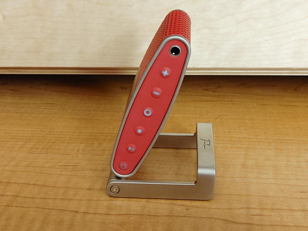 The version we picked up was red with silver trim and it looks absolutely gorgeous. The inserts are red while the trim is raw aluminum. This also includes the removable stand which is also aluminum.