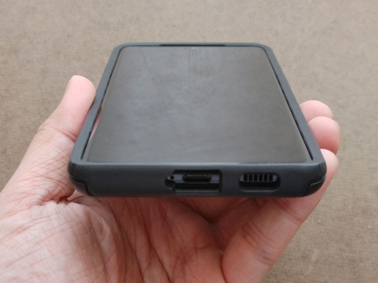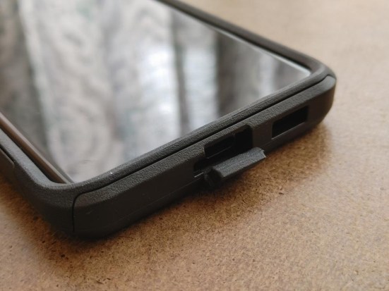 The Commuter case is what you would get if you still want a slim case, but want more of the protection OtterBox is known for. All the necessary holes are present here as well as covers for the buttons for more protection. This also features a protective cover for the USB-C port and helps keep dirt and dust out of the hole. The Commuter does offer a bit more screen protection as the rubber edges extend more past the screen which will protect the screen a bit when placed face down.
