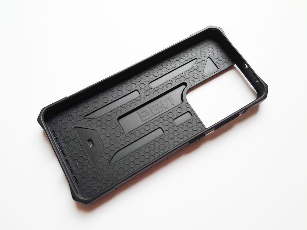 This is basically a hybrid style case with what seems like a polycarbonate back plate matted to an impact-resistant rubber core. On the back of that, there’s the additional carbon-fiber plate along with a protective exoskeleton on top. At the corners, you still get those distinctive UAG bumpers that they’re known for along with raised display edges, button covers, and torsion screw detailing on the rear. The sides of the case differ slightly from the Pathfinder too and instead features a rubberized honeycomb design that offers very good grip.