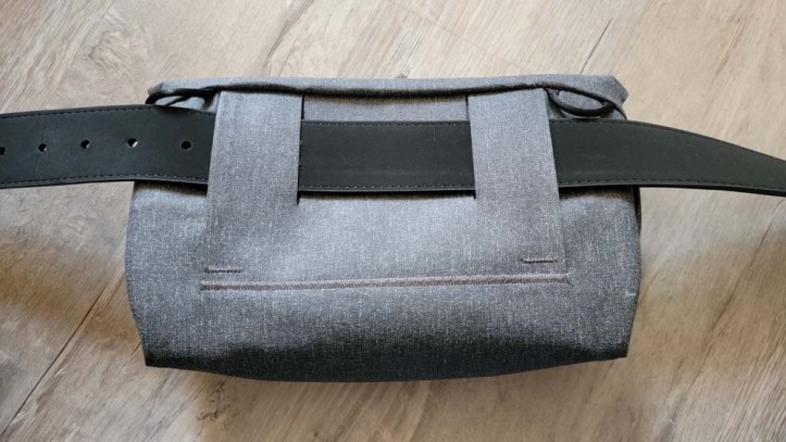 Starting with the exterior, the front features two long hook-and-loop strips that allow the rolltop lid to close in a variety of positions for expandable storage from 1.5L to 3.0L. On the front, there are also two Capture Clip attachment points to easily store and access your camera if needed. This is an optional accessory and not included with the Field Pouch V2. On the rear, you’ll find the two attachment points for the Hook Strap as well as the belt loops. There are actually two different-sized belt loops on the back, one for a standard belt and one for a larger photo belt.