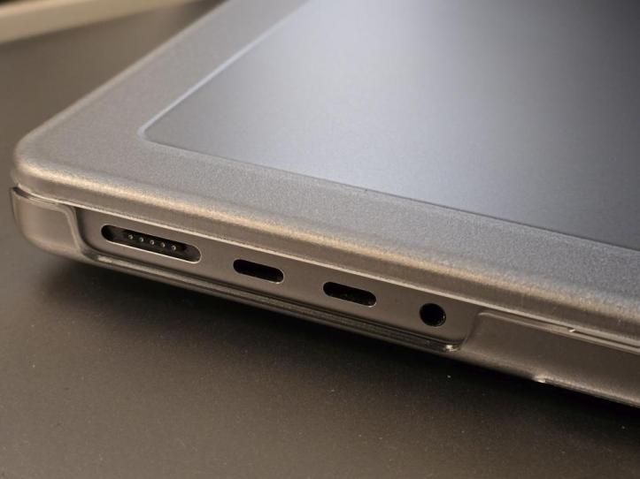 On the bottom of the case, you get four rubber feet for grip, and the case features full cutouts for all the ports and airflow openings on the Macbook Pro.